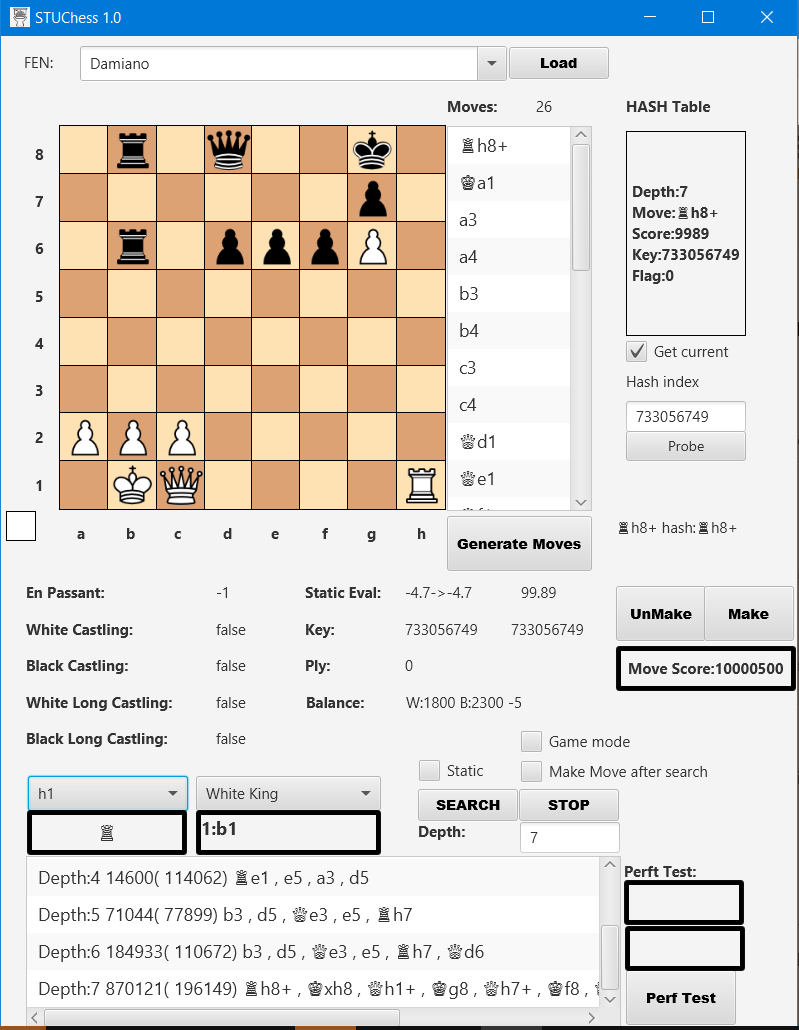 The picture, instead, shows, in the primitive interface, a variation of the Damiano's mate solved by the engine in about 3 seconds at depth 7.