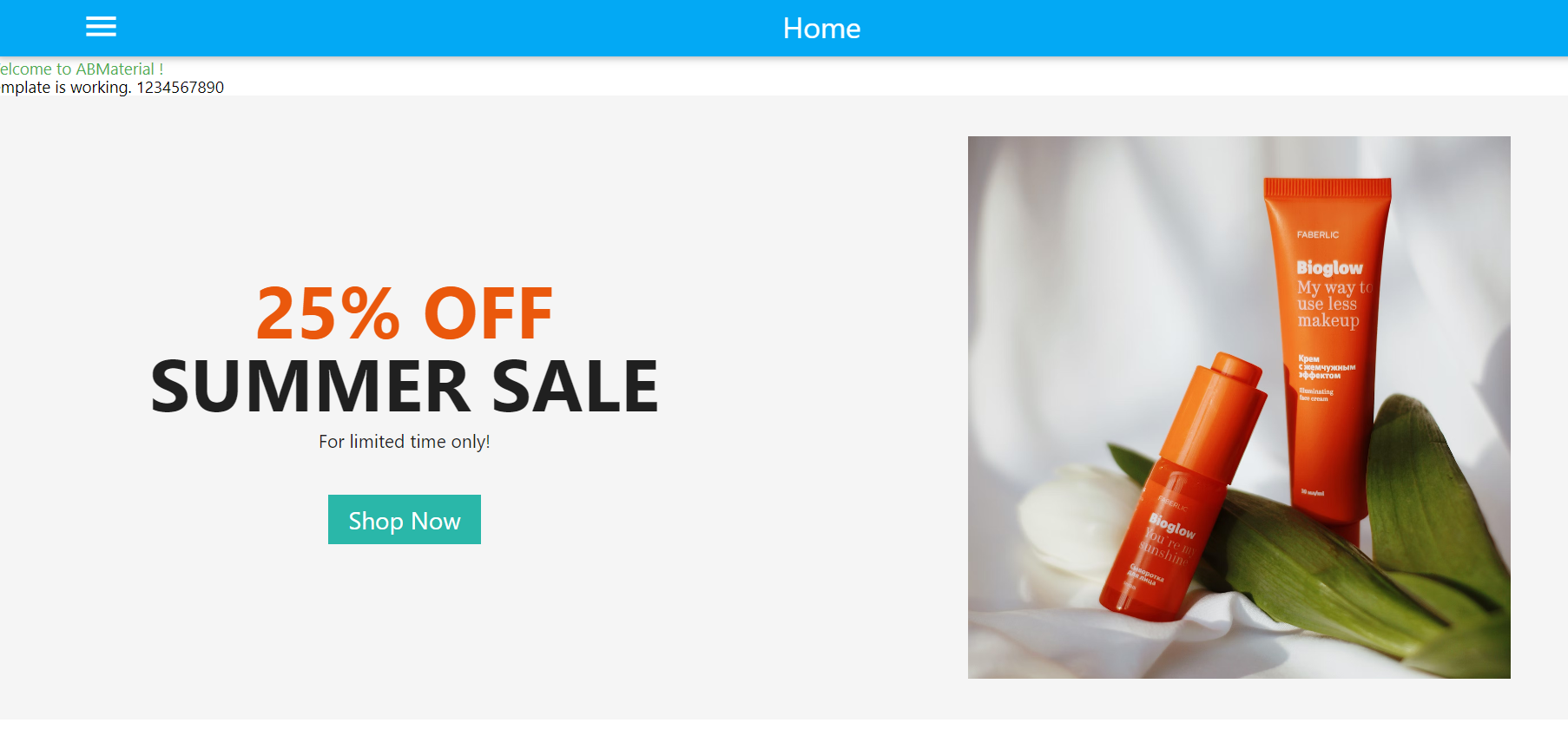 You can see that the first 2 lines of ABMaterial components have lost their CSS properties but the CustomComponent from Tailwindcss is displayed correctly.