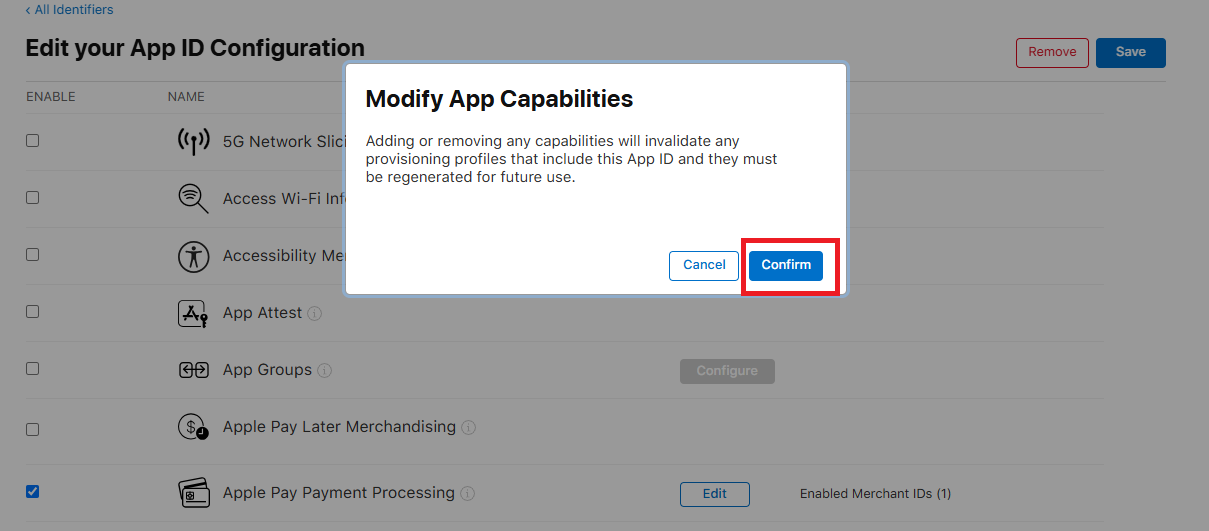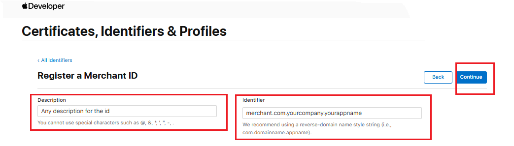 - First you need to create a merchant ID for your app and create Apple Pay Payment Processing Certificate.