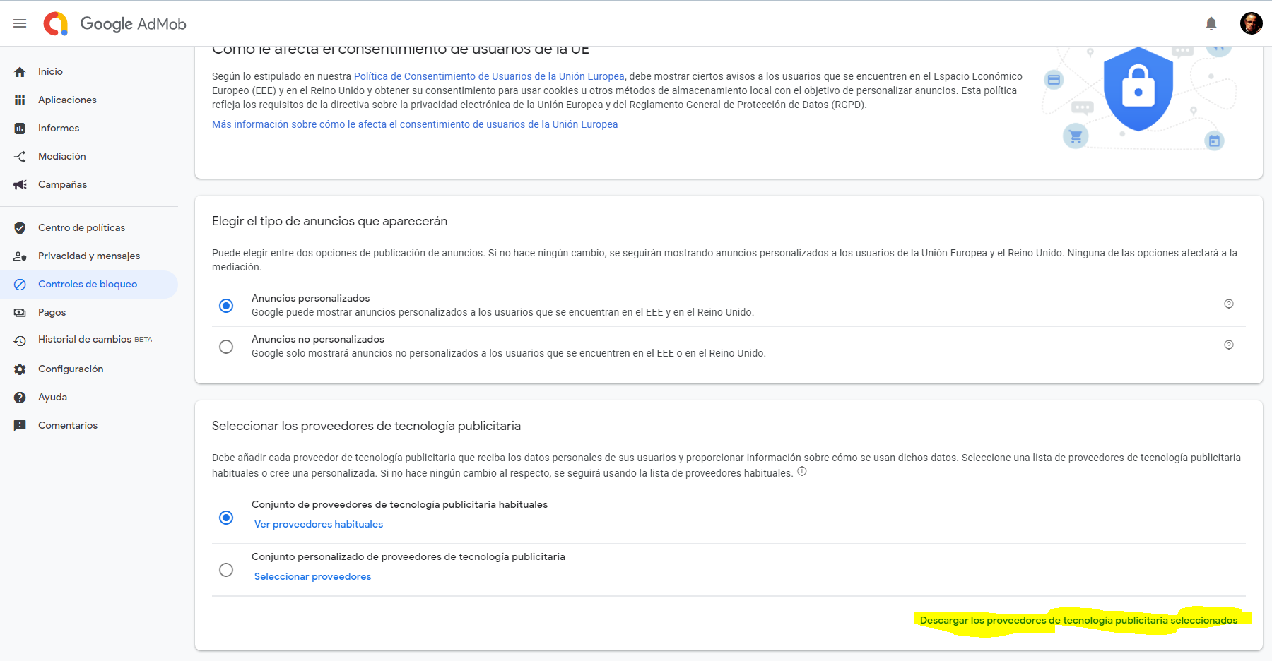 As each developer may choose his ads providers, each developer has to download his own file "ad_technology_provider_privacy_urls.csv" from his AdMob console