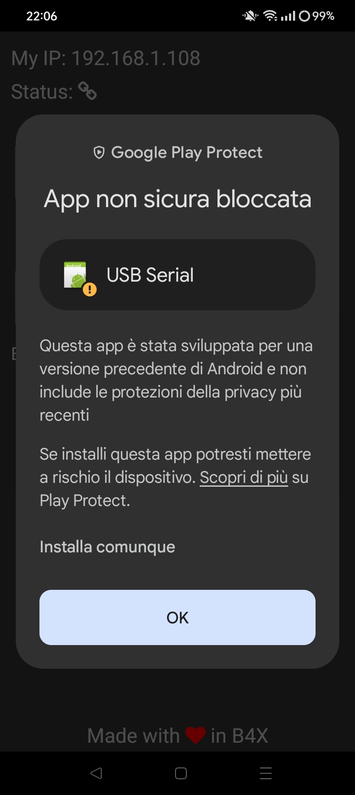 I try now to run some examples using USB but the phone stop the installation for a security reason.