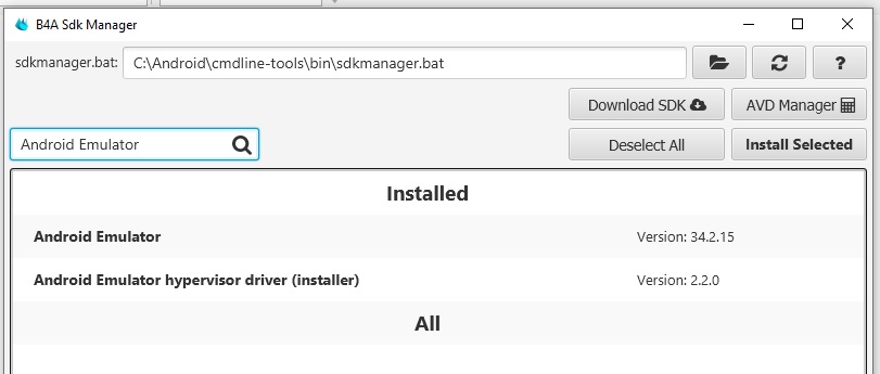 The Android emulator does not work after installing the B4A environment. Everything was downloaded from the official website and followed the instructions. After launching, an image appears (attached) and after clicking the Create AVD button, nothing happens.