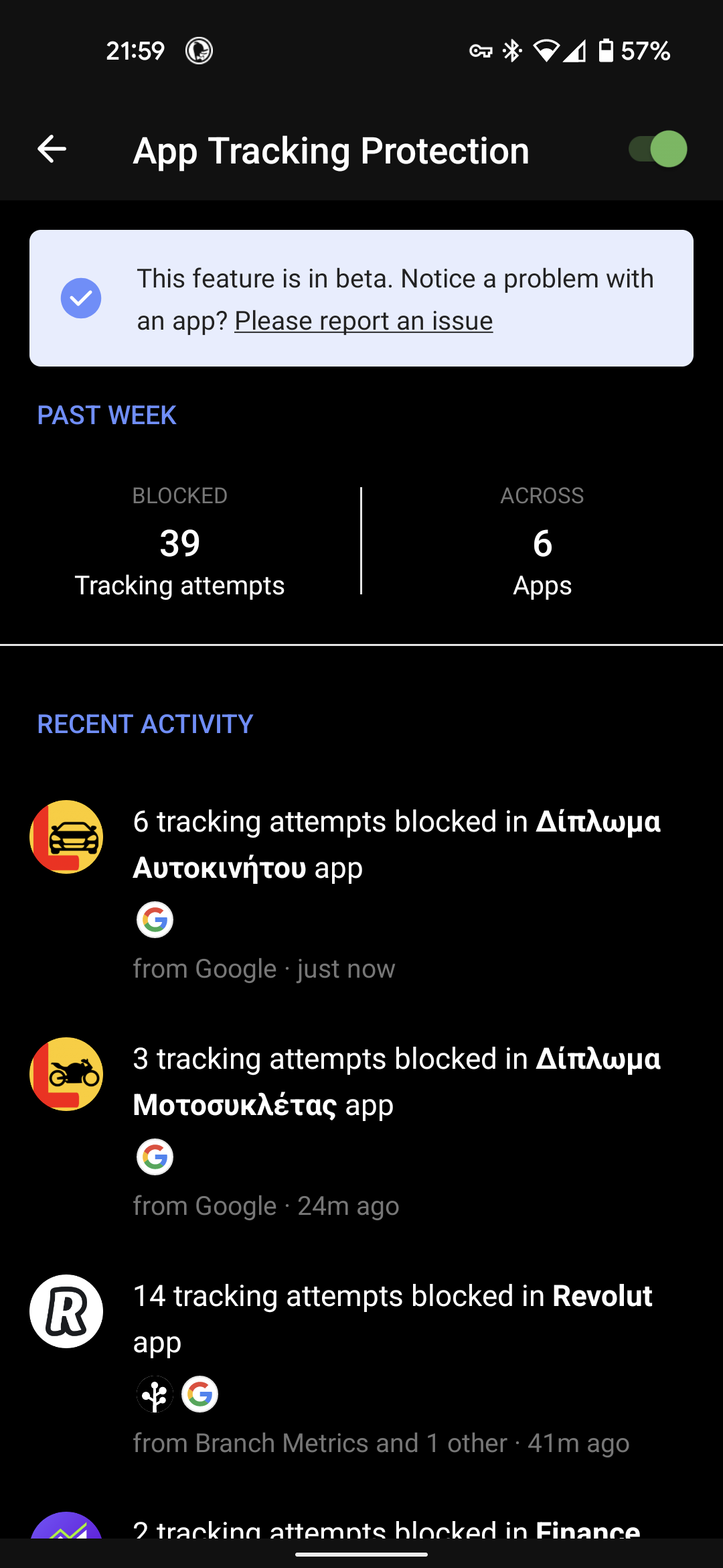 I am trying beta version of DuckDuckGo's App Tracking Protection. As I see my apps are sending user data at Google at start.