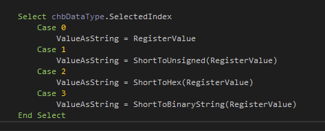 Added: type selection, only for the representation, in signed, unsigned, hex and binary.
