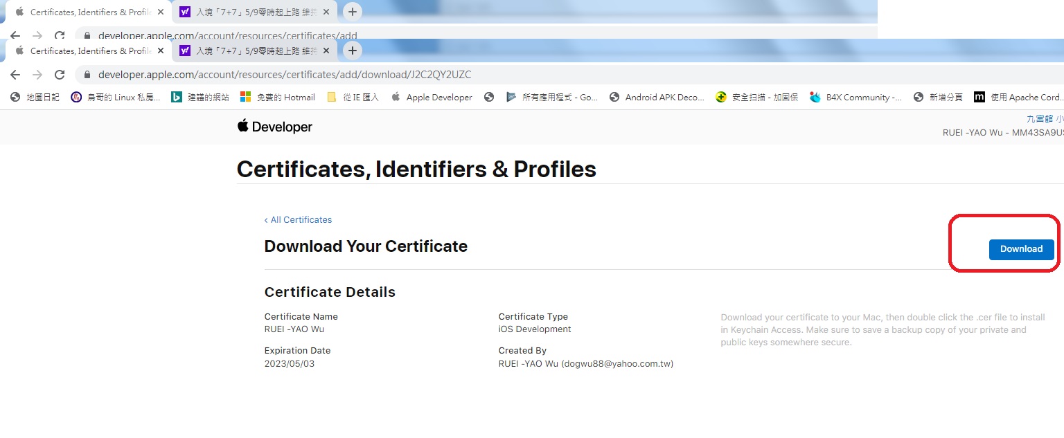 Signing Identity: "iPhone Developer: RUEI -YAO Wu (MVTS556MKG)"