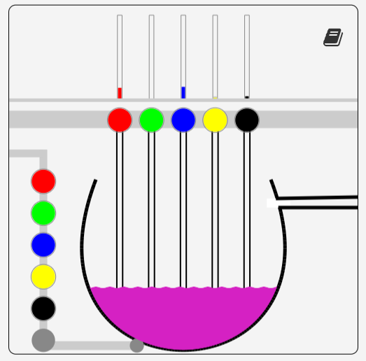 The Cauldon mixing pot is reminiscent of a puzzle type game. You add or subtract one of 5 colors to the cauldron.