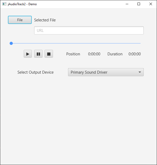 - provides the same functionality as the original jAudioTrack library i.e. Plays a file or URL to the selected device and reads the correct audioformat from the stream.
