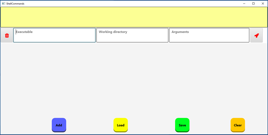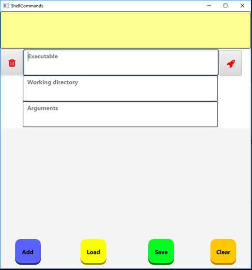 The yellow Load button presents an open dialog to select a commands text file. If you cancel that dialog the default text file (commands.txt) will be used if there is one.