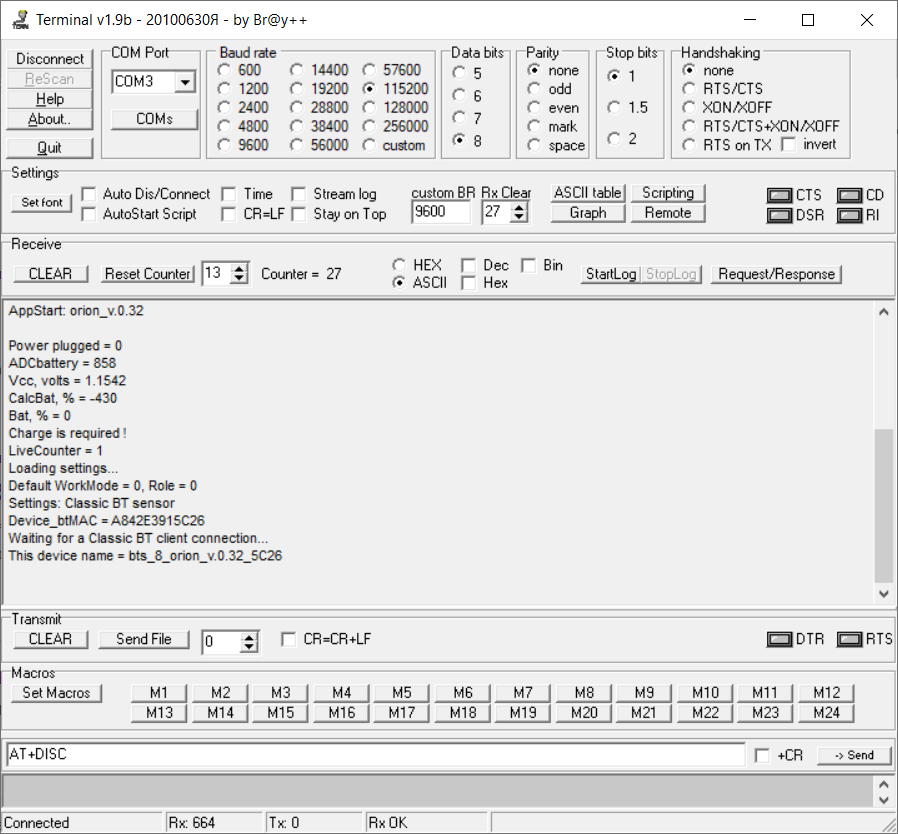 Another COM-port terminal is also always connected, and if the port speed is chosen wrong - it's visible non-readable output from MCU at each reset button pressing.