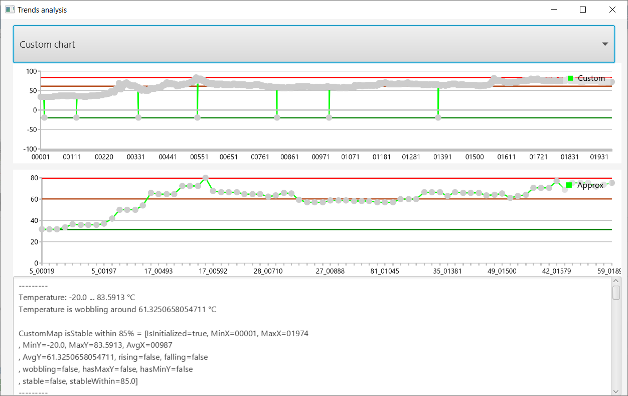 If to have a chart, i mean, the data table with 2 columns, say weather temperature per hour - it would be good to have an analysis code that can check the data changing trend and return some result.
