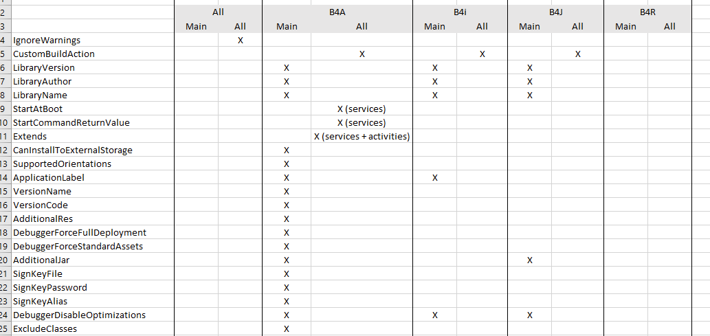 | Attribute | Activity Module | Class Module | Code Module | Service Module | Project Attributes | Library Attributes |
