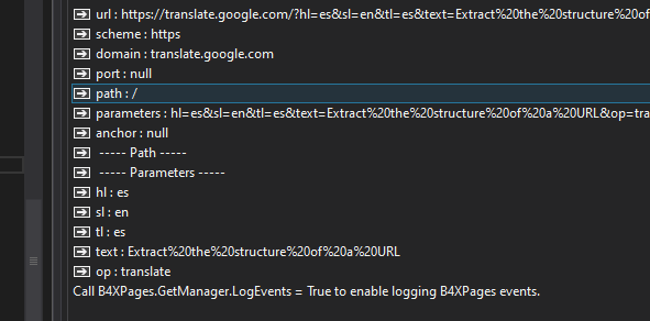 Dim URL As String = "https://translate.google.com/?hl=es&sl=en&tl=es&text=Extract%20the%20structure%20of%20a%20URL&op=translate"