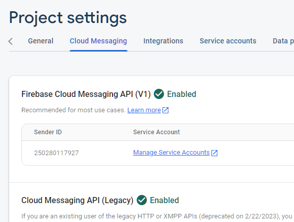 Google has deprecated the previous method of sending push notifications. It will stop working on June 2024.