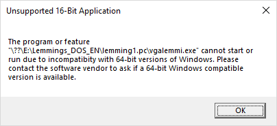 Yeah, you might have identified a weak spot of my argument there ? I tried running DOS Lemmings on this new laptop and got: