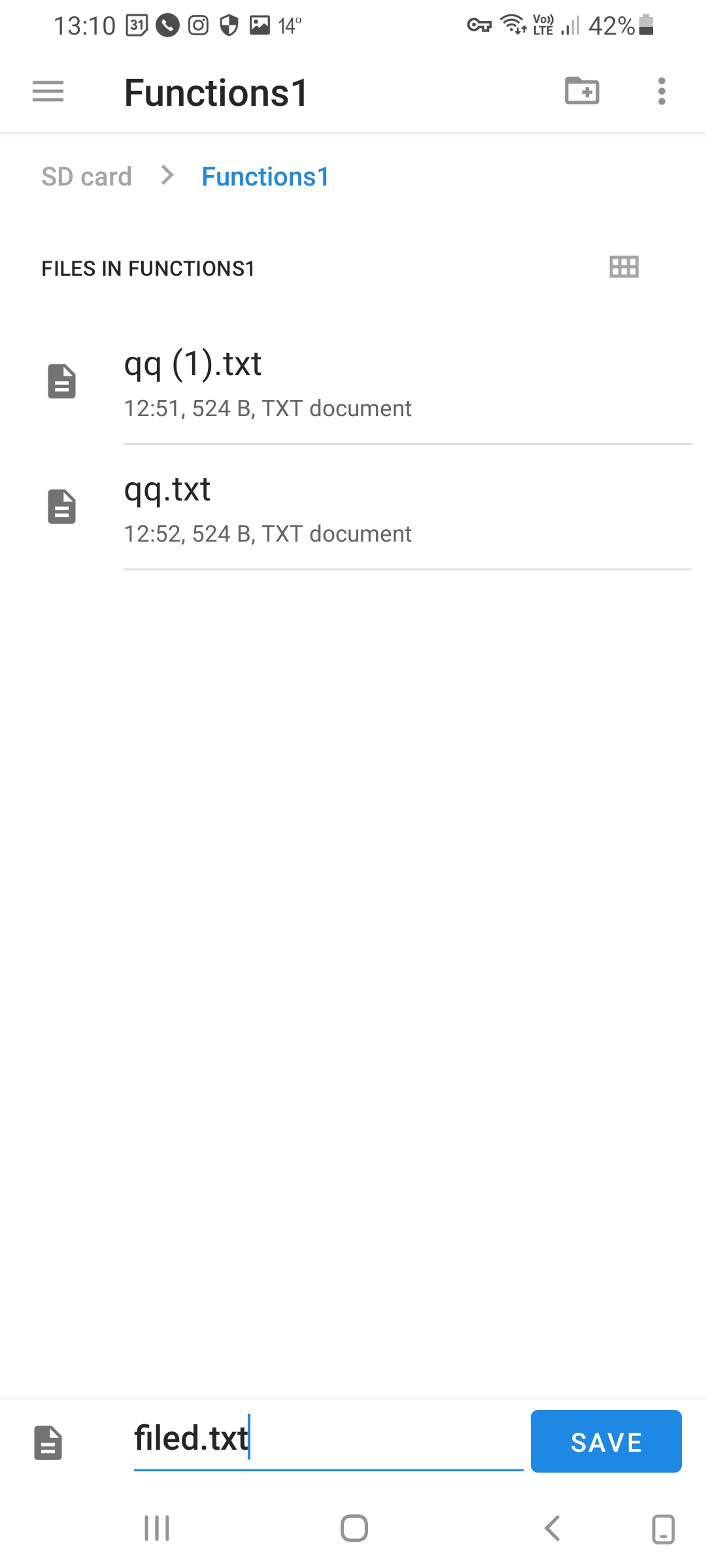 This also allows saving the text with the Files app. - Allow other apps to view text files using this app: https://www.b4x.com/android/forum/threads/open-external-files-with-your-app.50525/#content