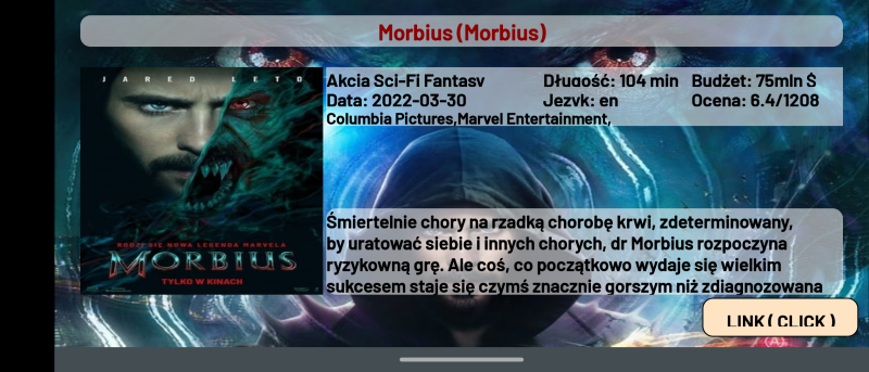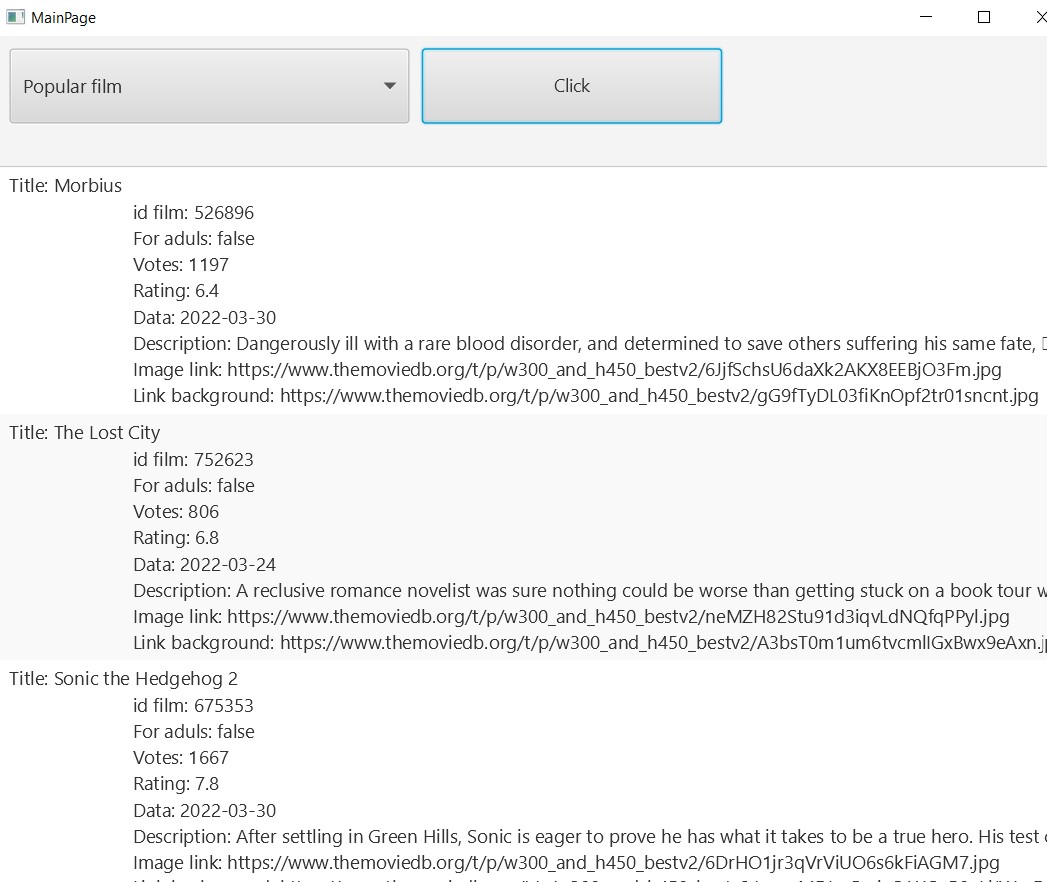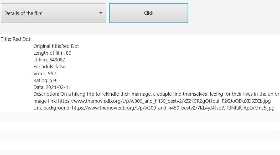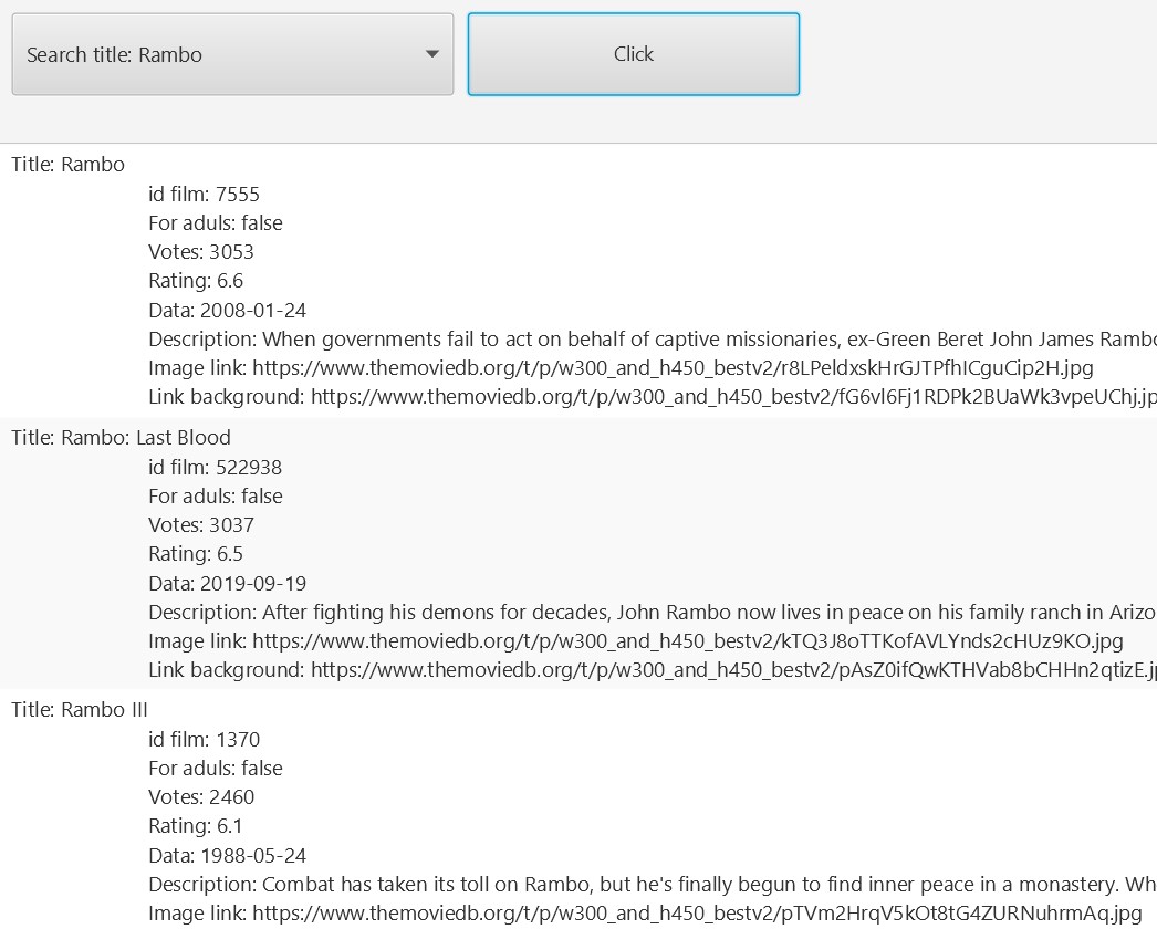 Then I wrote a library to download descriptions, covers, backgrounds and other things about the movie. You can search for a specific movie etc. I used PAGE TMDB