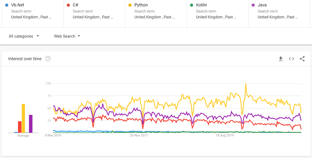 Here is an extremely simple example on how to easily recreate Google Trends results using B4XPages with B4i and the xChart library. In this example I used Google Trends to search for five different search terms (I started with vehicle manufacturers but the results were disappointing) and I exported the results as a CSV file. Google Trends shows you two charts on one screen, the CSV file has the necessary data to recreate the charts using the excellent xChart library.