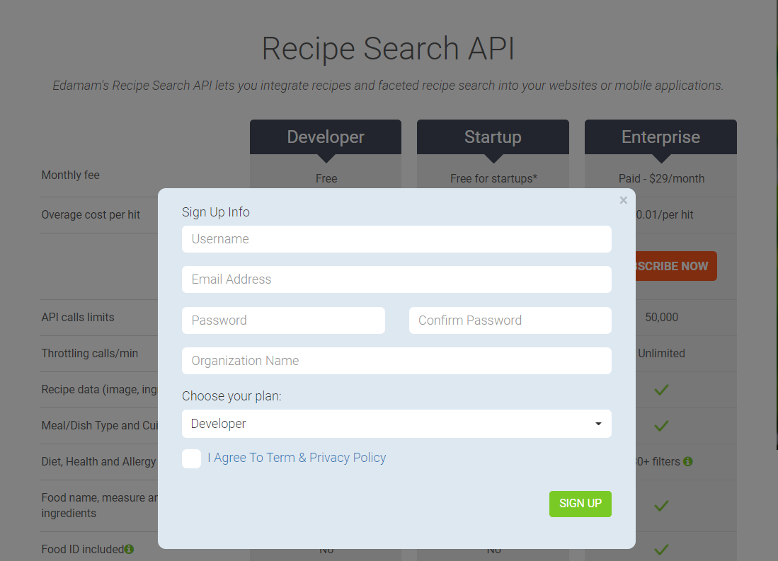 1. Go to the site, https://www.edamam.com/ and select recipe search