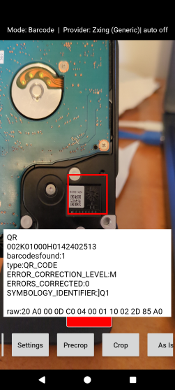 and android 16 and sdk 35 and teeny-tiny barcode on back of small hard drive and direct from camera preview