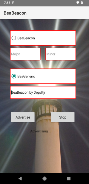 BeaBeacon© is the natural evolution of my Advertently© ble scanner/connector: if i can scan for ble devices and connect to them to see their services, characteristics and descriptors, why can't i be a ble device myself and advertise? of course, i can. android supports legacy advertisements both as an ibeacon and as a generic ble peripheral. and with additional 3rd-party libraries, it can also broadcast in other beacon formats, eg, eddystone.