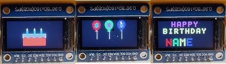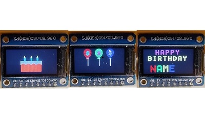 Birthday card that plays happy birthday tune and display greetings on a TFT display. The speaker is a piezo buzzer and the TFT is 0.96", 80x160 pixels, ST7735 driver, SPI interface.
