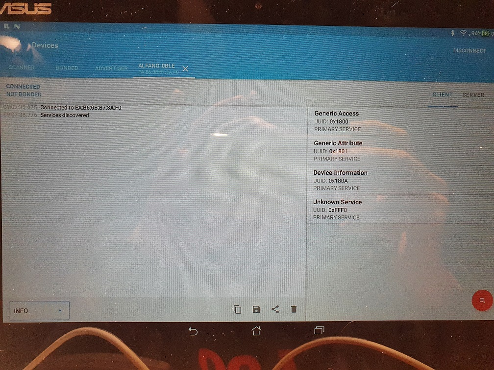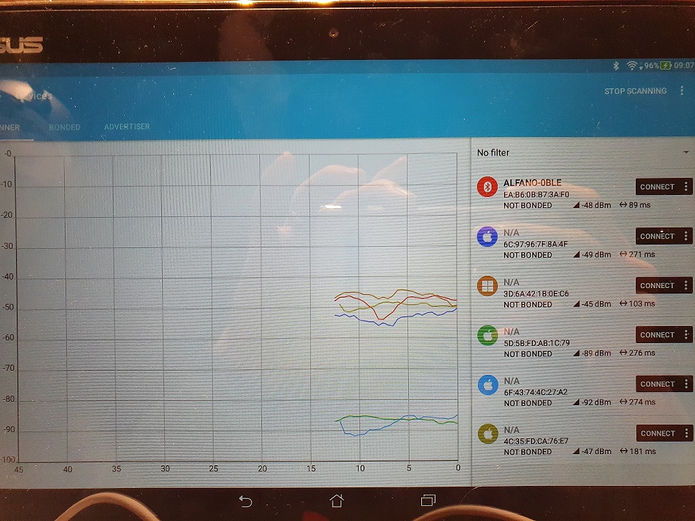 Found: ALFANO-0BLE, EA:B6:0B:B7:3A:F0, RSSI = -47, (MyMap) {1=[B@a93bfe3, 2=[B@1f20de0, 9=[B@f8a5899, 0=[B@43c875e}