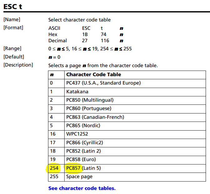 Also, could you please show me a fragment of your code that sends text to the printer. Eg are you sending strings or bytes? What happens when you send those extended characters Chr(166) & Chr(167) & Chr(168) to the printer? What characters does it print? (from that, we can probably work out what code page it is currently using, which is a useful starting point)