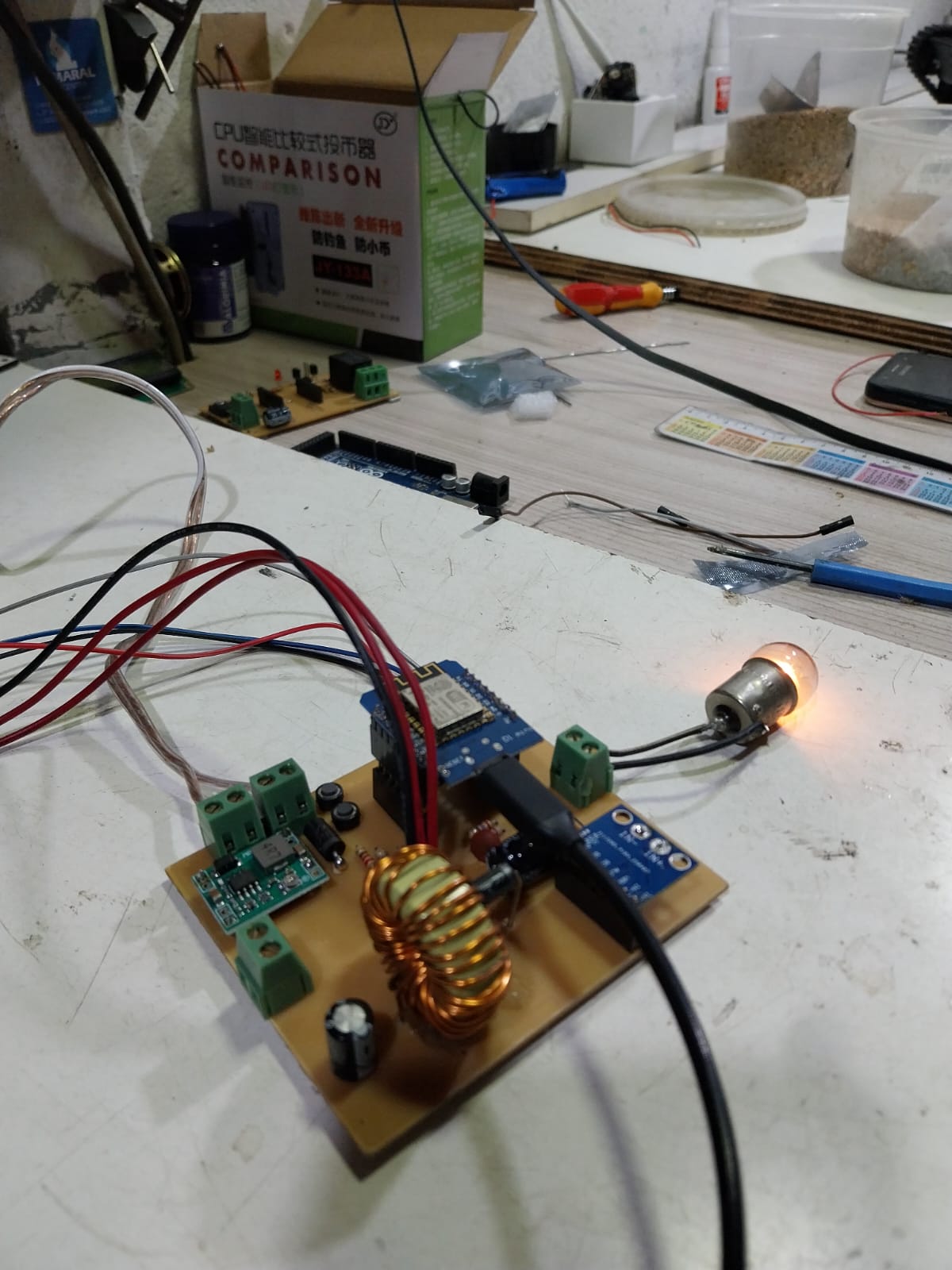 Hi everyone! Let’s talk a little about this project, Booster Converter, using the ESP8266 and an SSD1306 display, which shows all the sensor information.