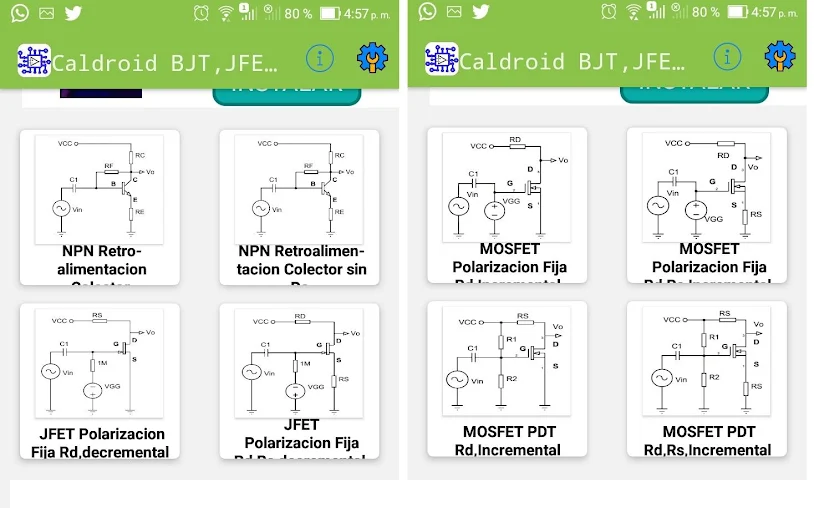 With this App you will be able to do the DC analysis of Bjt, Jfet, and Mosfet transistors (incremental and decremental); View the real-time Q-point graph as well as the detailed step-by-step circuit analysis procedure.