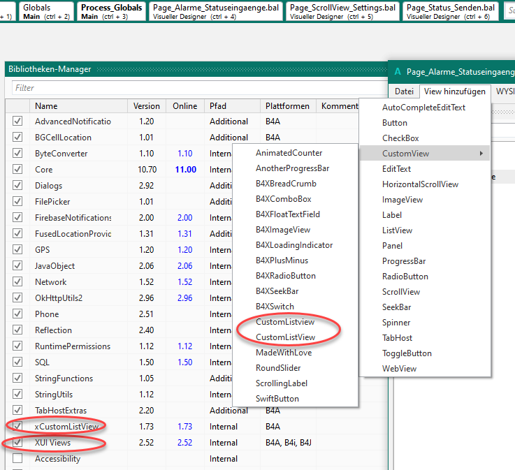 One of the two entries seems to be the correct xCustomListView because it offers extended options ("pressed color" and "divider color").