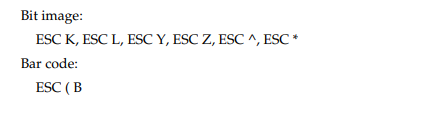 El manual de la impresora indica el Código de control para imprimir código de barras con comandos ESC / P es el: ESC (B y para imprimir siguiente con IBM PPDS es: ESC [f, ESC [p