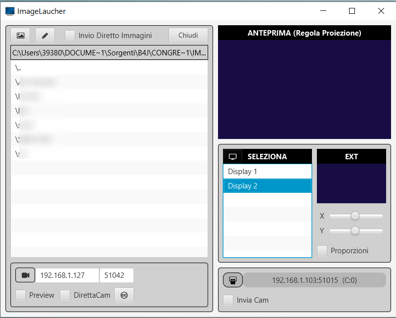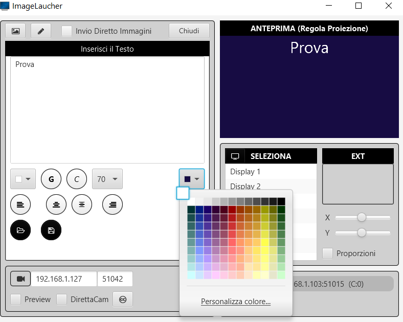 Prima di inviare a schermo una SLIDE/Immagine è possibile vedere un anteprima prima di inviarla. Selezionare lo schermo a cui inviare.
