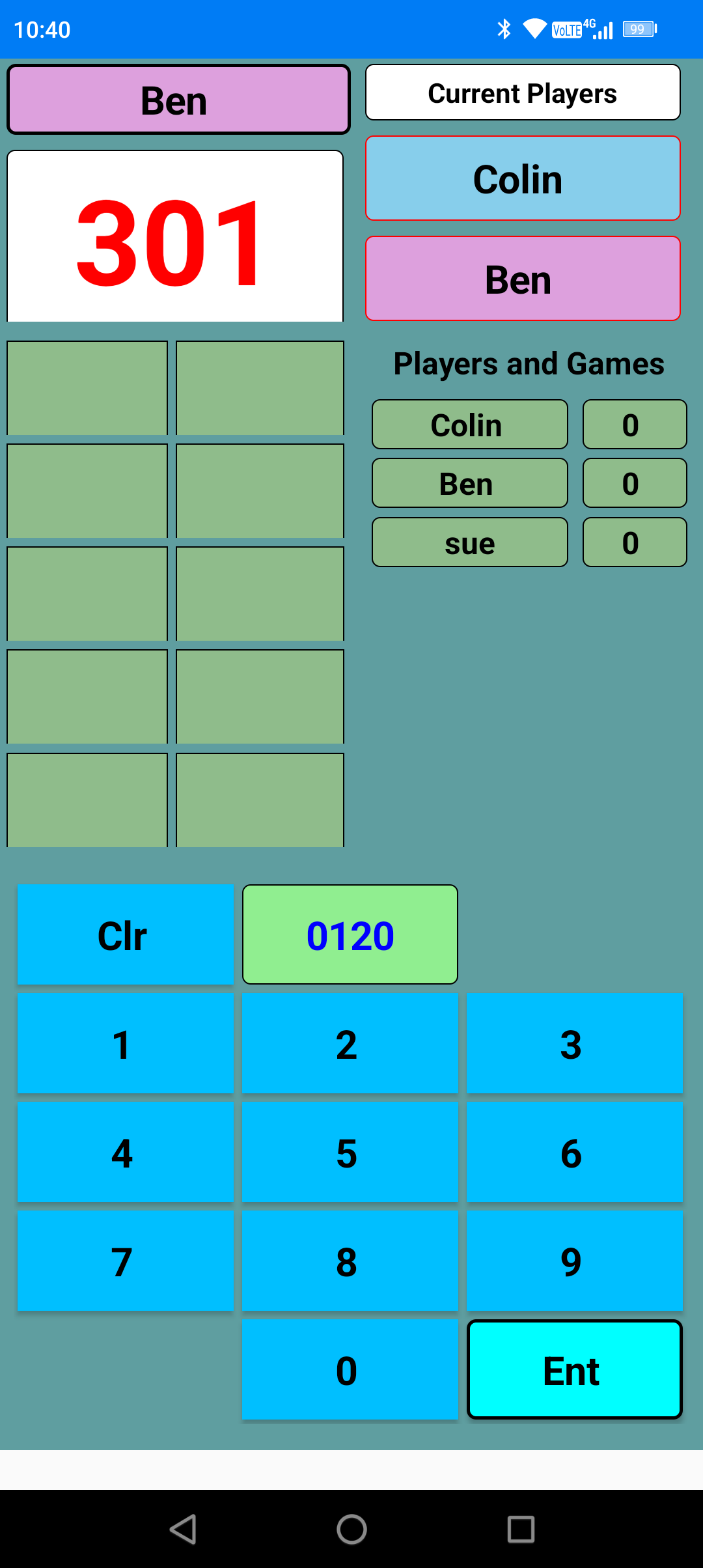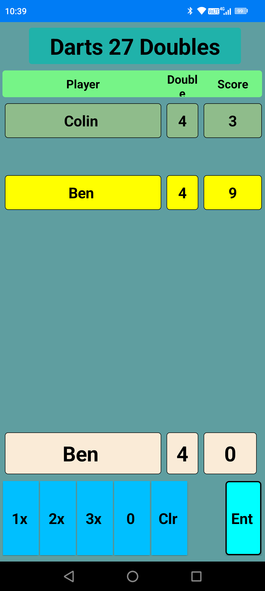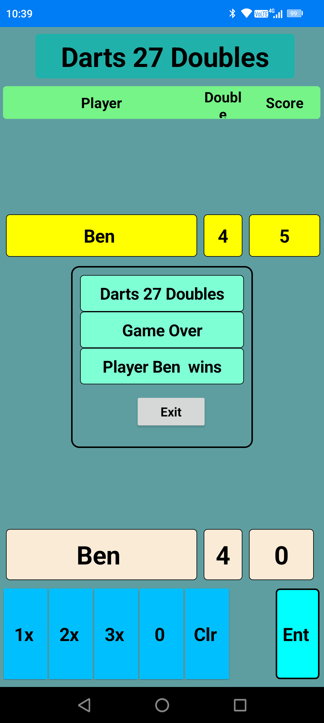 My latest app is done for my local darts team who play in the Shrewsbury League. It's a basic scoreboard that switches between the two players automatically making scoring the game very easy.