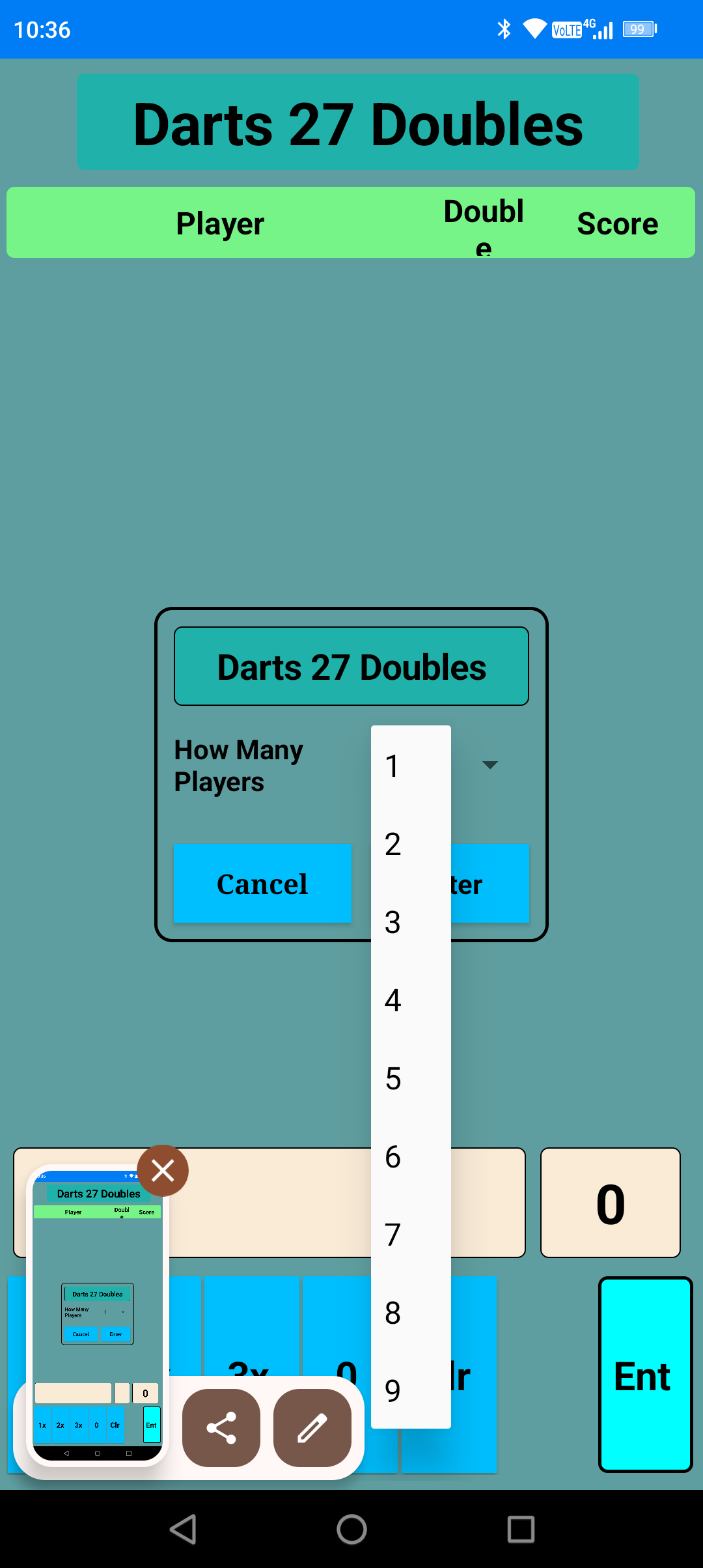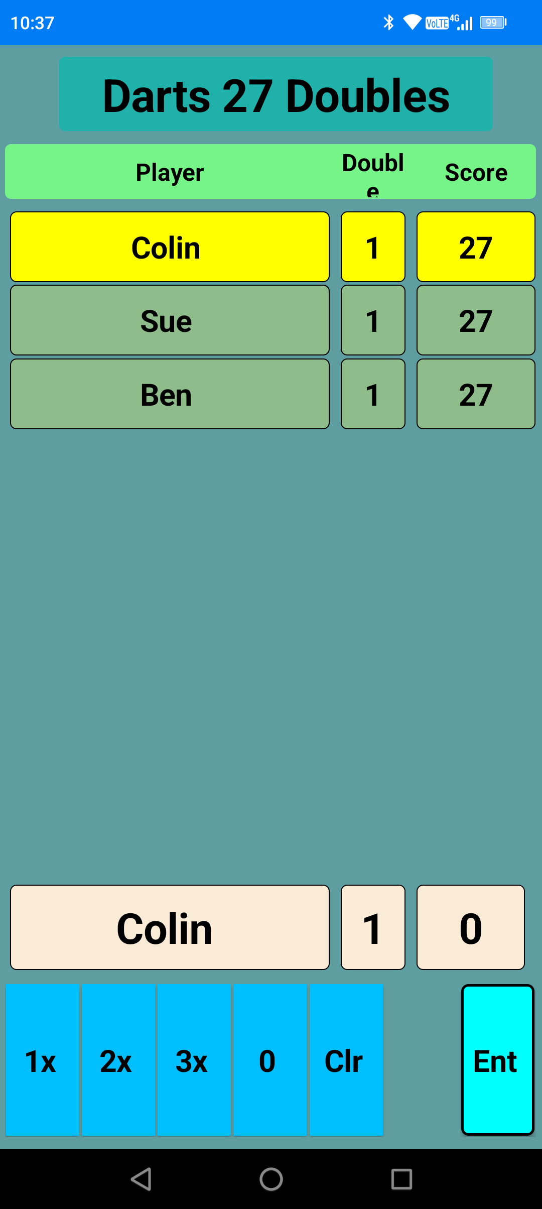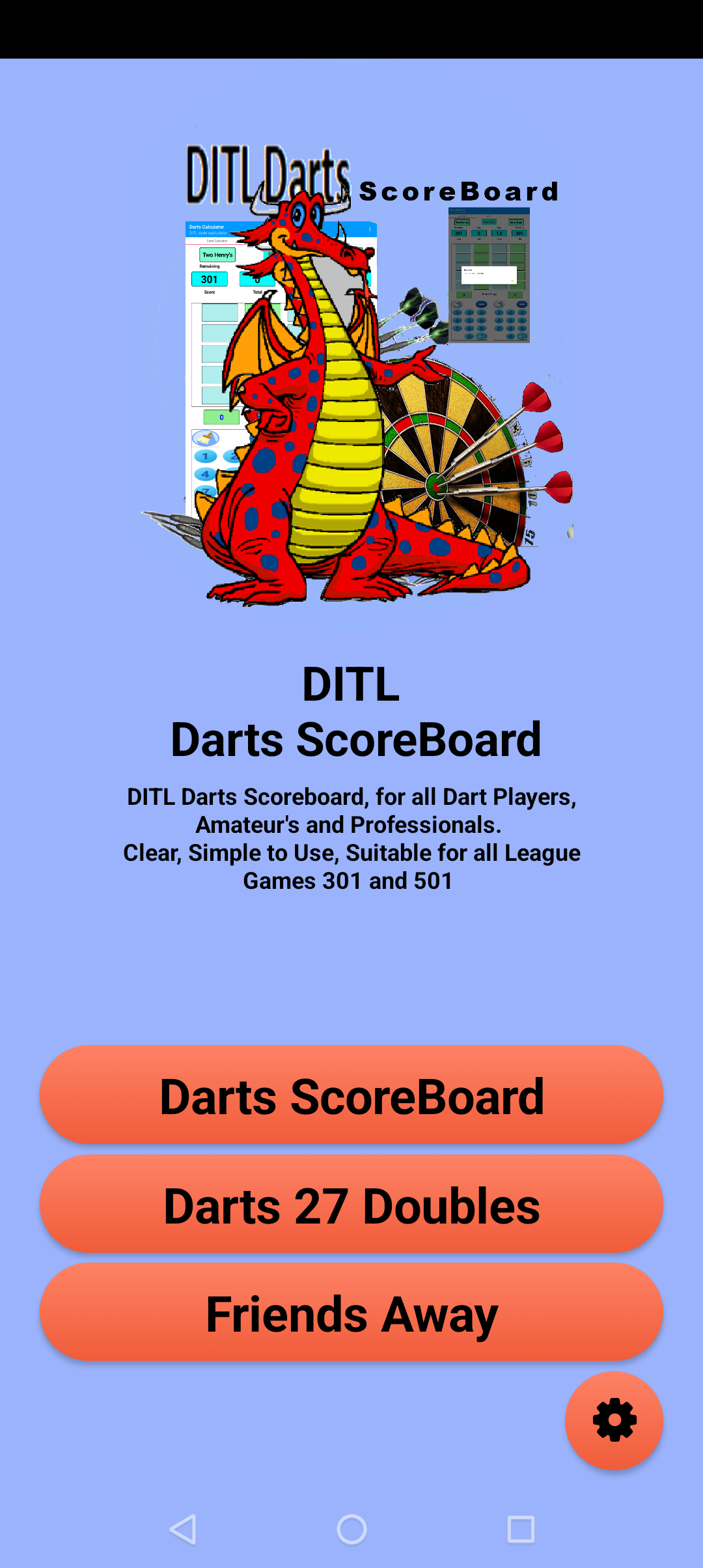 My latest app is done for my local darts team who play in the Shrewsbury League. It's a basic scoreboard that switches between the two players automatically making scoring the game very easy.