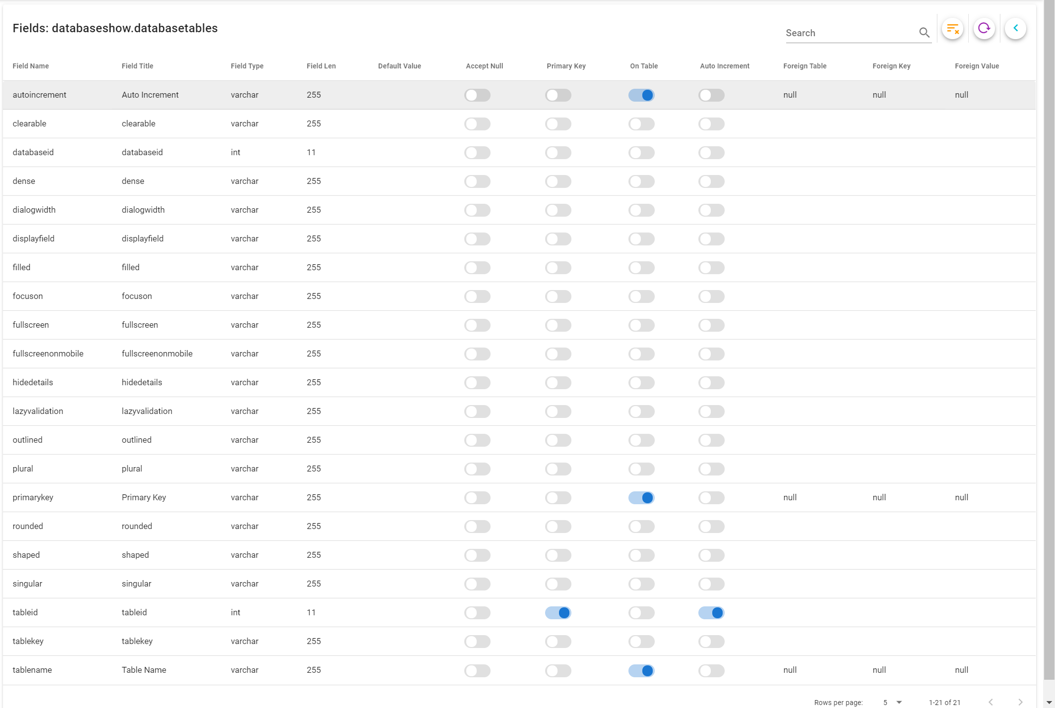 Field Filtering - before one can view the table data, one should be able to specify which fields they want to be shown on the data-table. This is done by turning the 'On Table' switch on. This eliminates the possibility of large data-tables as one is able to pin-point exactly what they want. With the Field Title, one is able to give the field, a nicer name to show on the data-table.