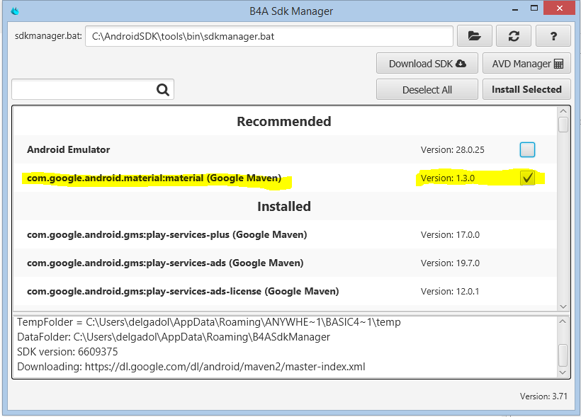 - Install/Update Android Support Packages with the SDK Manager.