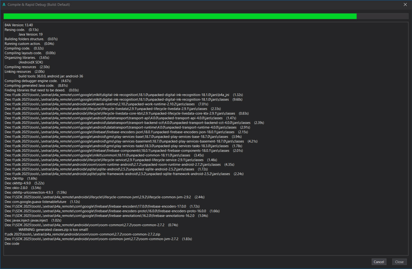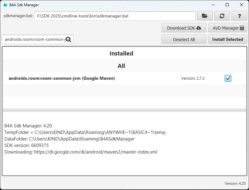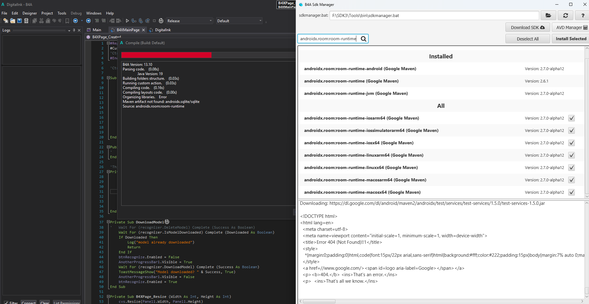 Open B4A Sdk Manager and install the following resources (you might need to install a few more resources. If you get a "missing module" during compilation then install it):