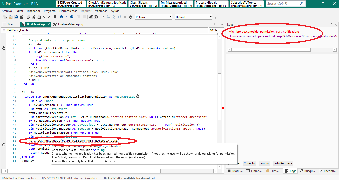 2. Next year it will no longer be possible to send notifications like this. You will need to create a B4J server that receives the message from B4R and sends the notification: https://www.b4x.com/android/forum/threads/b4x-firebase-push-notifications-2023.148715/