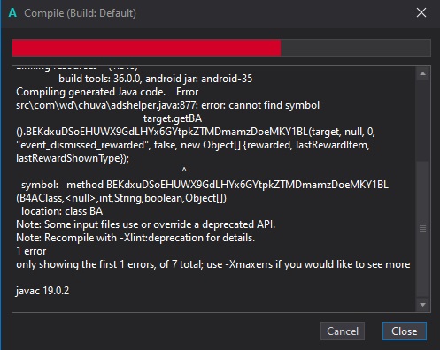 I'm developing an app, and I want to display rewarded ads, but when compiling the app I get the image error, Could you tell me the reason for this error, thank you all