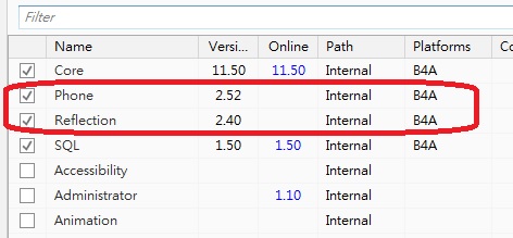 and I find In my internal libraries , Phone verion 2.52 and Reflection version 2.40 not "online"