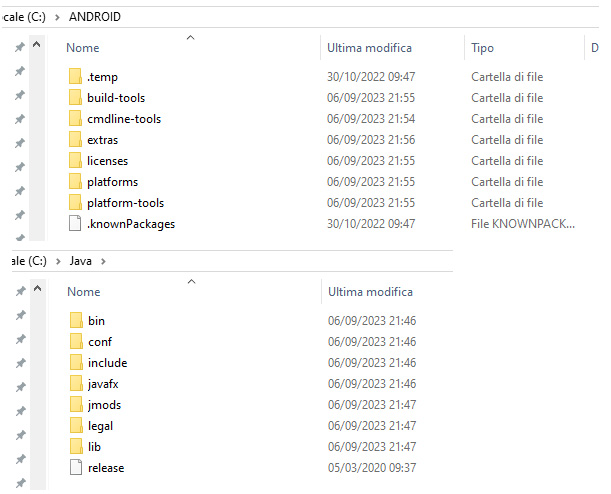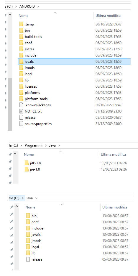 correttamente Jdk o qualcos'altro . Allego le immagini delle due cartelle di installazione , cosa manca?