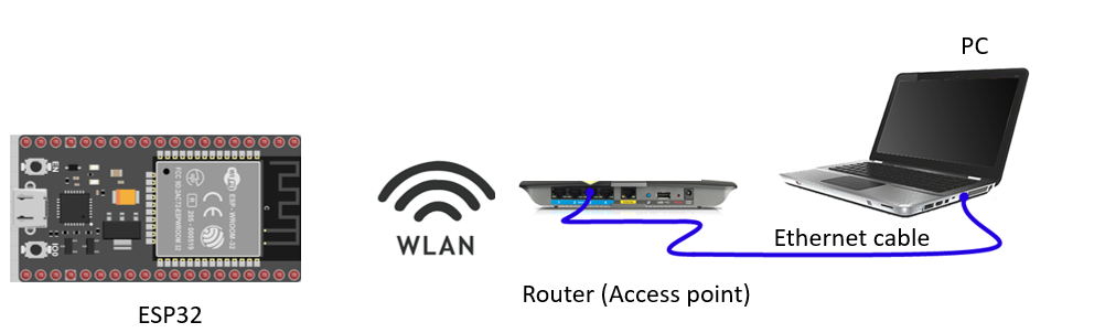 The router is connected to a pc via ethernet and should read the data sent to the router from the ESP32 board via ethernet.