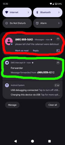 sometimes i might like to be made aware of an expected sms and have it forwarded, either to a private phone