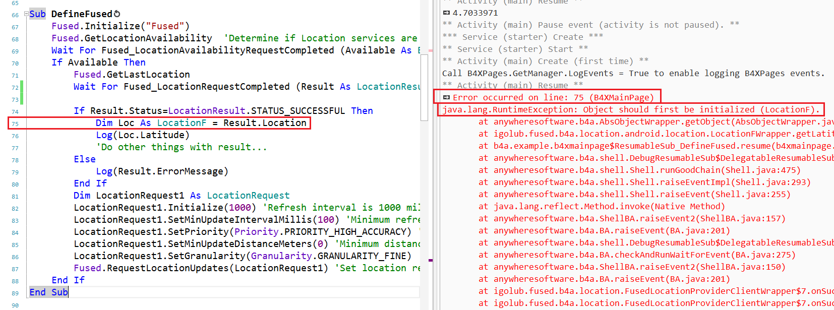 Log("LastLocation Latitude = " & LastLocation.Latitude)