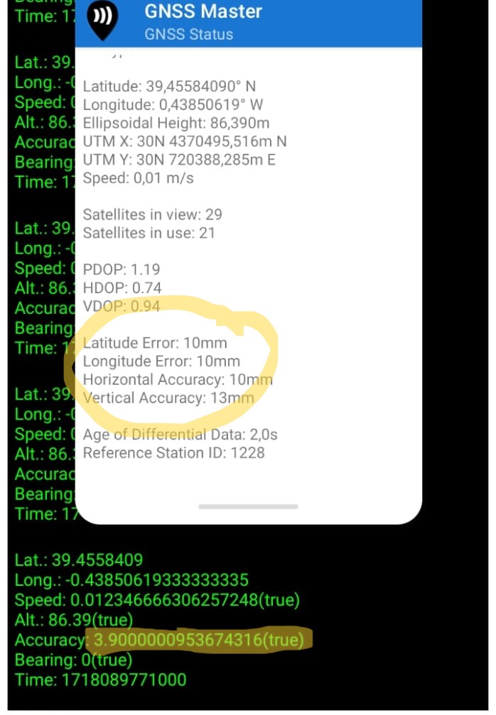 Occasionally and without knowing the reason, the two programs do give the same accuracy, but after a few seconds it returns to show an accuracy of 3.9m.