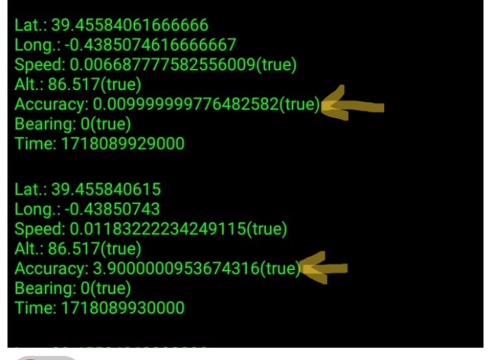 I am developing an application that requires maximum gps accuracy so I display this value on the screen. My problem is the following: when starting the gps the precision is improving until it reaches the value 3.9 m and from there it does not go down. The coordinate values are correct since I verify them simultaneously with another program, but the accuracy is not updated correctly.