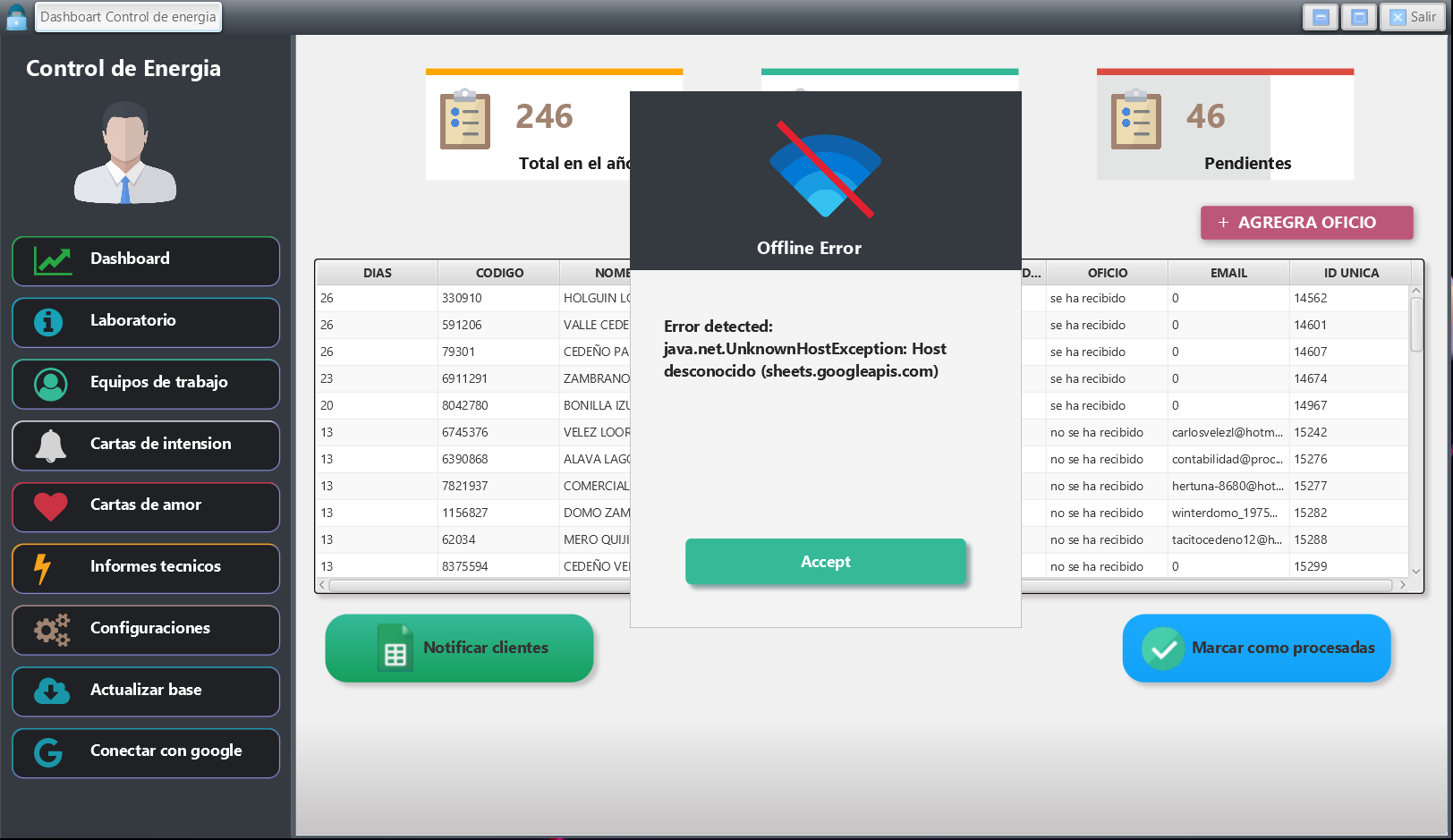 • Error dialog boxes were implemented that will see if a successful connection was not made or the data was not sent. (Screenshots are attached)