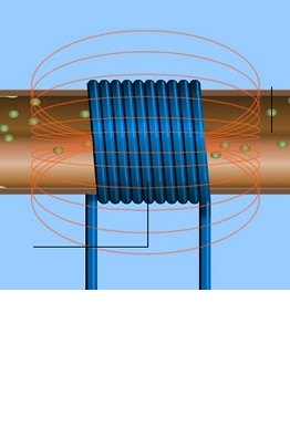 The coil on the water pipe is made of 5 meter long insulated wire of 24 to 20 gage. The wire is turned around the copper or plastic water pipe (it can not be steel pipe) in a single layer. On a pipe of 20mm diameter it will form 55 turns.