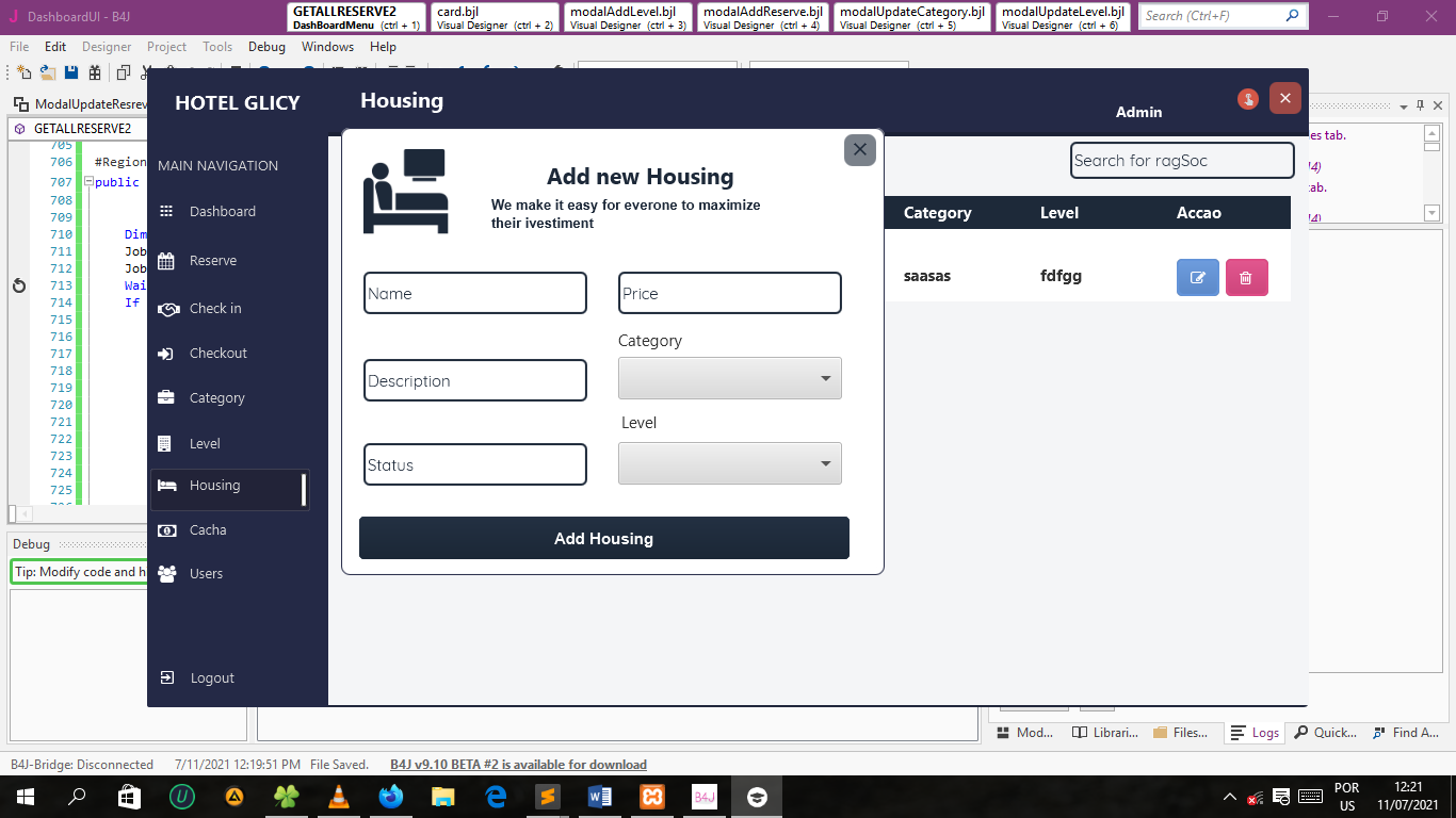 Hotel system B4J( B4J+Api+BD MySql):Hotel system with some functionalities, ie it has 68% of functional parts, developed in B4J with API and MySql database integration