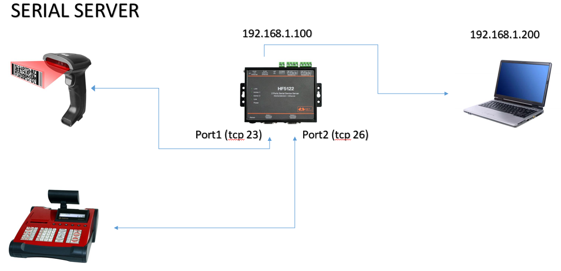 We use HF5122 to connect rs232 (barcode scanner, cash register, etc..) devices with a pc